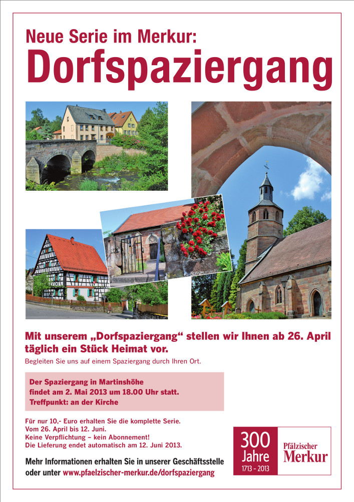 Plakat des Pfälzischen Merkur zur Serie "Dorfspaziergang". Hier zum Termin in