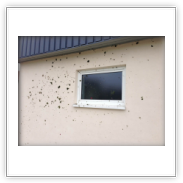 Es handelt sich überall an den Wänden, Türen und Fensterbereichen um Anhaftungen von Papiermaché, das