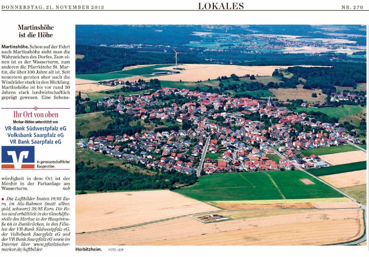Luftbild und Kurzbericht von Martinshöhe aus dem heutigen Merkur.
