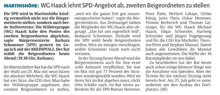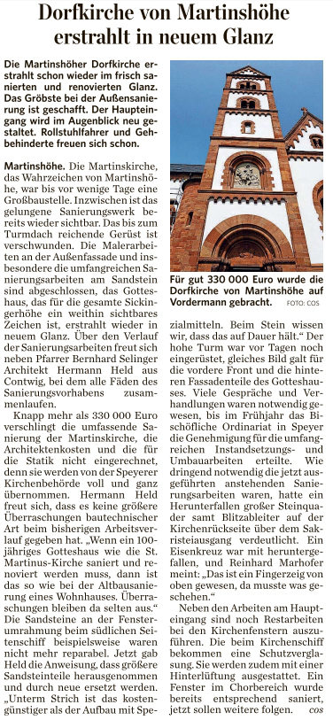 Anwesend waren ebenso Pirmin Heinz vom Pfälzer Waldverein und Peter Hemmer vom Schützenverein, welche die Sitzgarnitur aufgebaut haben und Frau Dahl vom Sportverein Martinshöhe, der neben anderen Vereinen die Fundamente ausgehoben und betoniert hat.