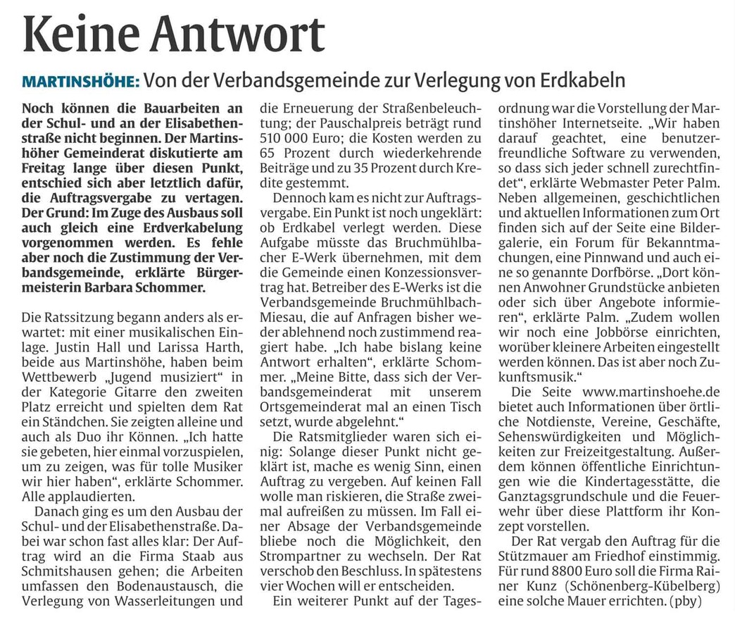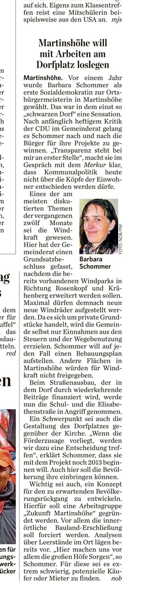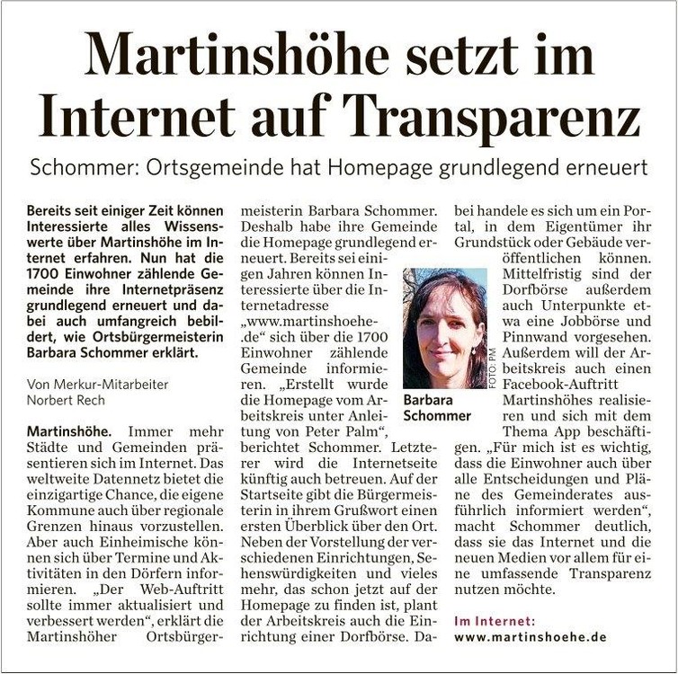 Bericht aus dem Merkur über die Neugestaltung der Martinshöher Homepage.