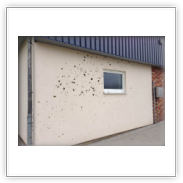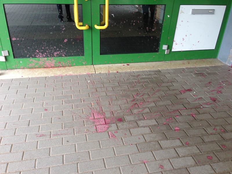 Weise beschmutzt. Besonders extrem sind die Eingangsbereiche der betroffenen Gebäude zugerichtet worden.