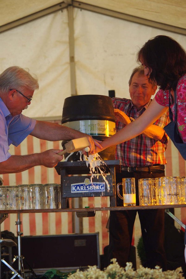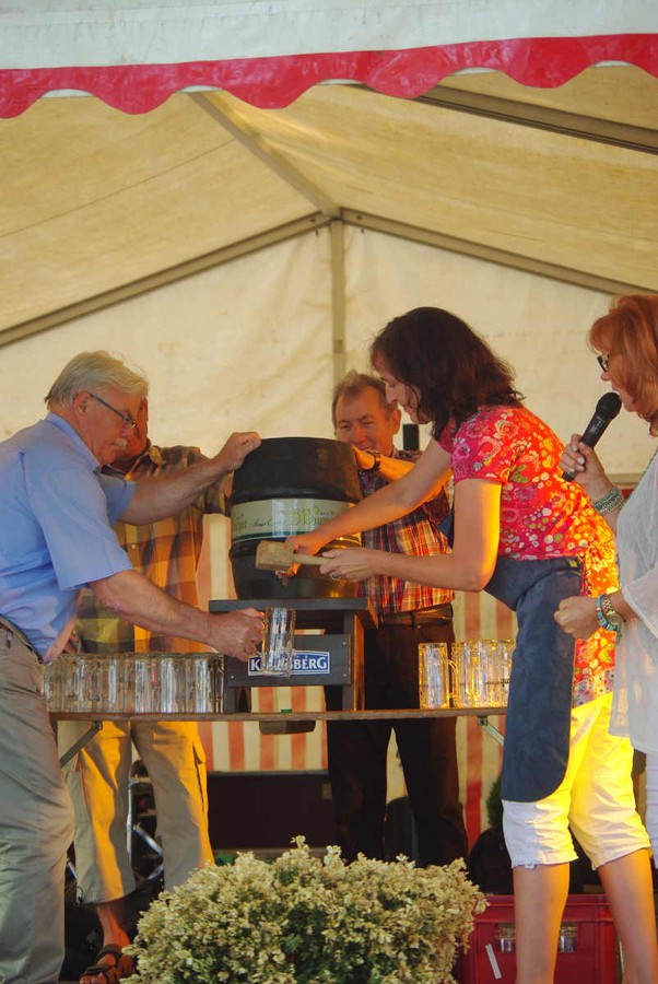 Bei wunderschönem Sommerwetter wurde mit einer halben Stunde Verspätung das diesjährige Dorffest durch den Fassbieranstich der Ortsbürgermeisterin eröffnet.