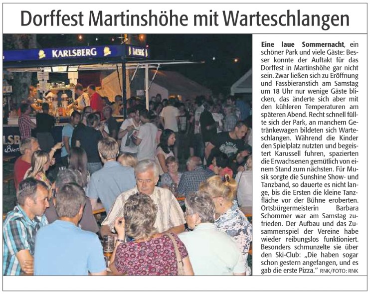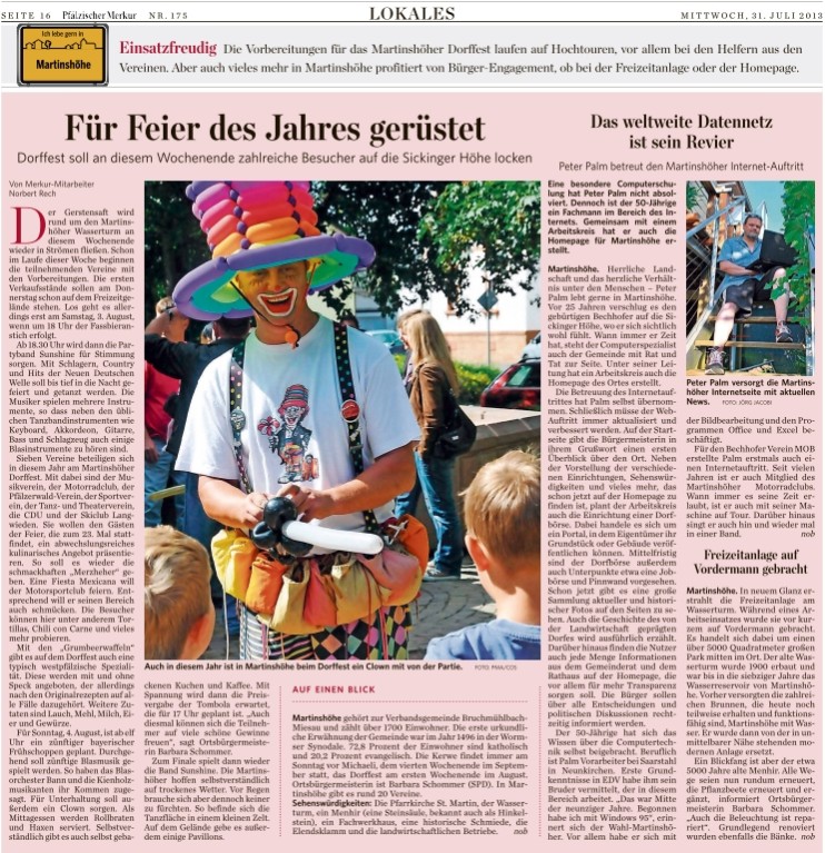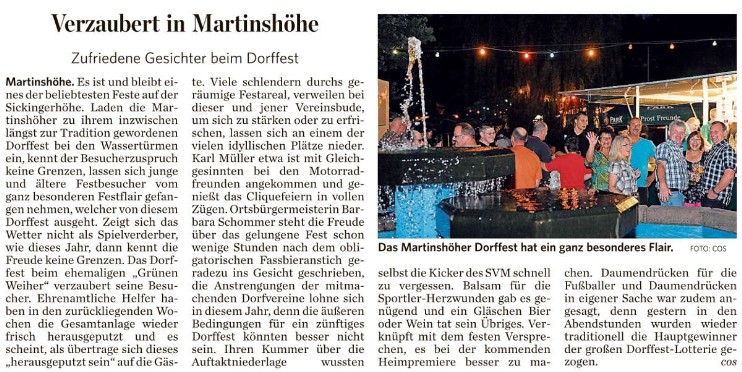 Bericht über das Dorffest am kommenden Wochenende im heutigen "Pfälzischen Merkur".
