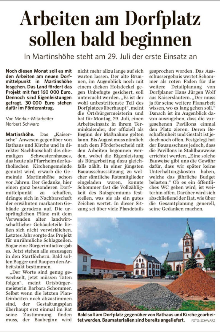 Nachtrag Bericht Rheinpfalz zum Maßnahmenbeginn "Neuer Dorfplatz"
