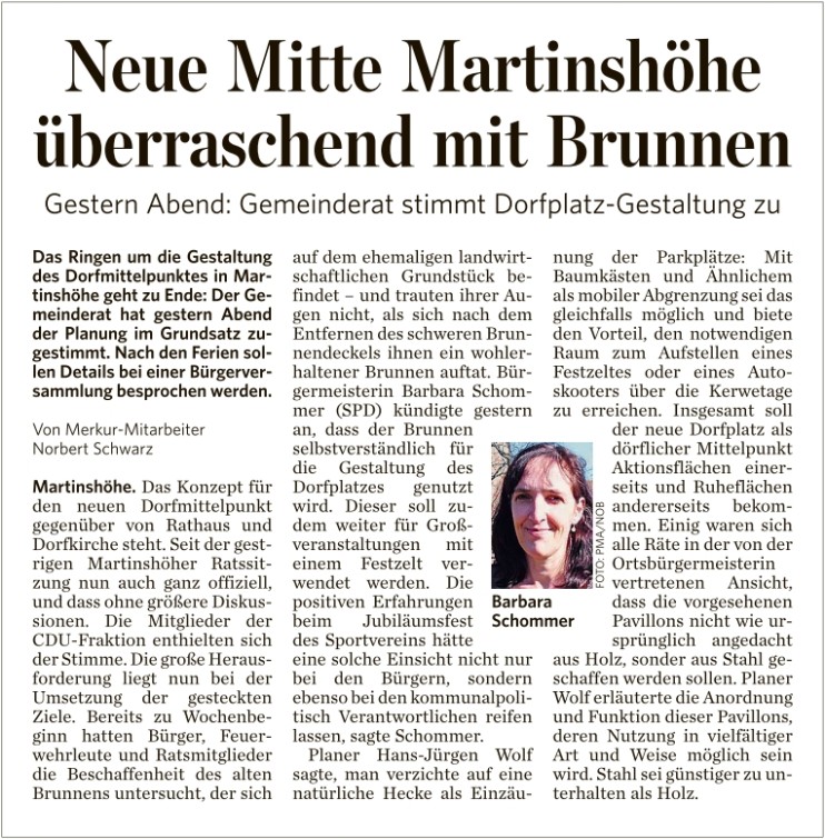 Bericht des Pfälzischen Merkur über die gestrige öffentliche Sitzung des Ortsgemeinderates Martinshöhe
