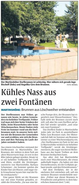 Rheinpfalz-Artikel über den Brunnen in der Freizeitanlage.