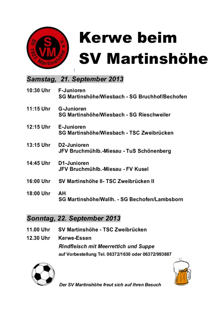 Kerweprogramm des SV Martinshöhe