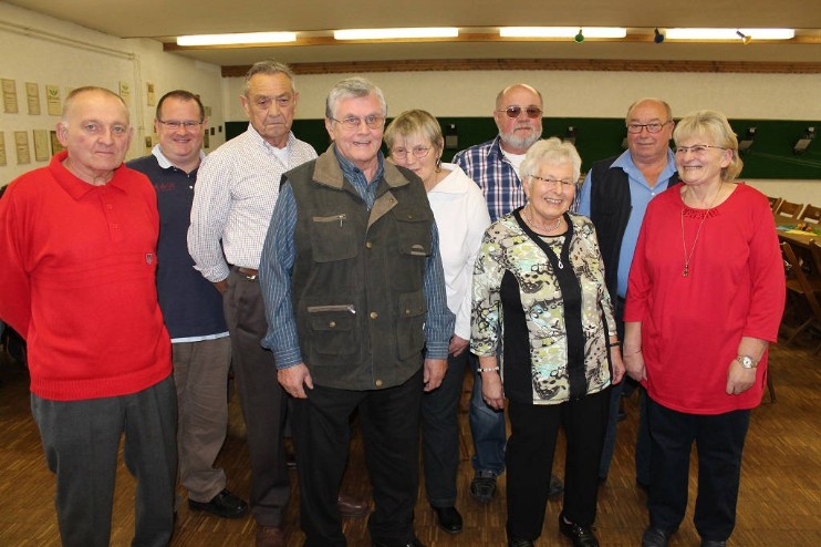 (hinten, von links) Albert Schley, Timo Schlaer, Heiner Woll, Sigrid Wilhelm, Karl-Theo Geier und Georg Mayer