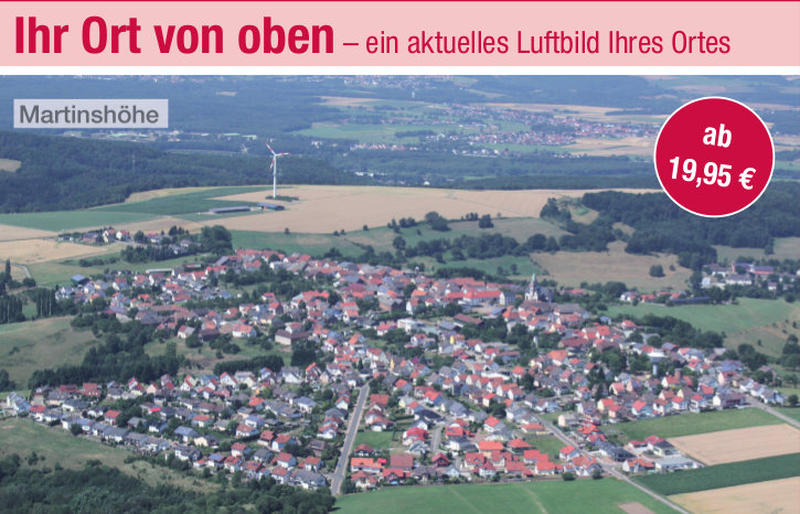Über den Pfälzischen Merkur kann eine sehr schöne Luftaufnahme der Ortsgemeinde Martinshöhe