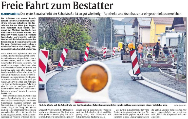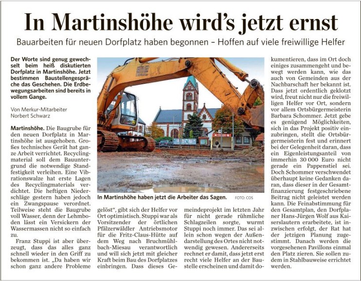Bericht des Pfälzischen Merkur über die Arbeiten am Dorfplatz.