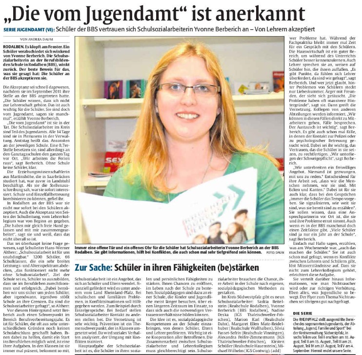 Berichte aus der Rheinpfalz über die Martinshöher Schulsozialarbeiterin Yvonne Berberich