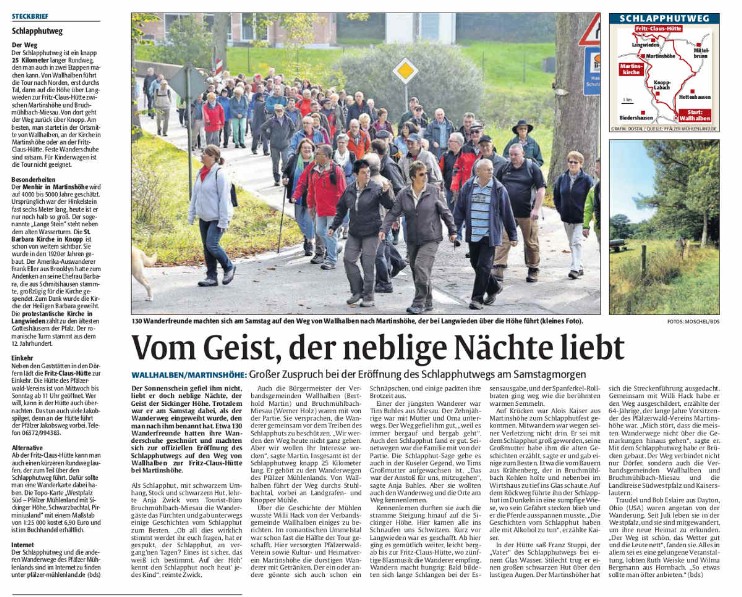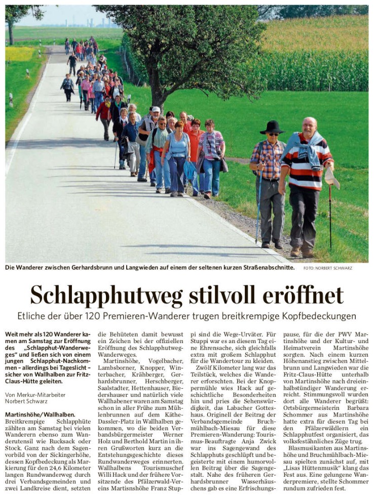 Berichte aus der Tagespresse zur Eröffnung des Schlapphutweges