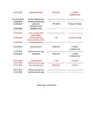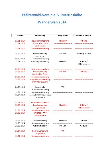 Wanderplan 2014 des Pfälzer-Wald-Vereines