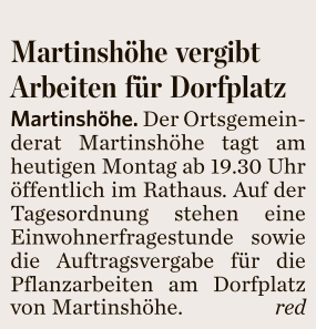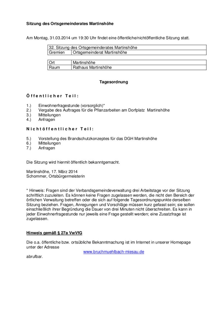 Tagesordnung der Ortsgemeinderatssitzung am 31.03.2014