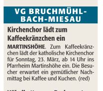 Am Dienstag, den 01.04.14 findet um 19.30h im Dorfgemeinschaftshaus Martinshöhe ein Treffen der im