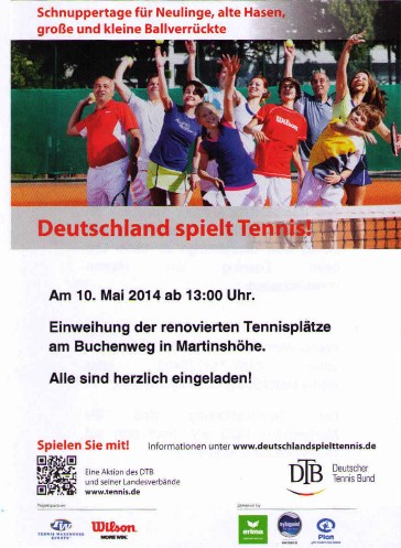 Neueröffnung der renovierten Tennisplätze am 10.05.2014 ab 13:00 h