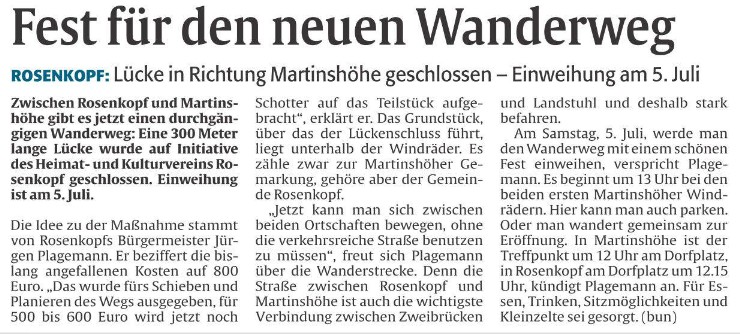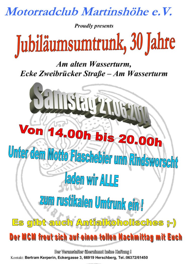 Weitere Infos am 30.05. 14 ab 19h und bei der Ortsbürgermeisterin.