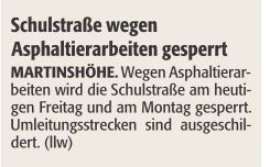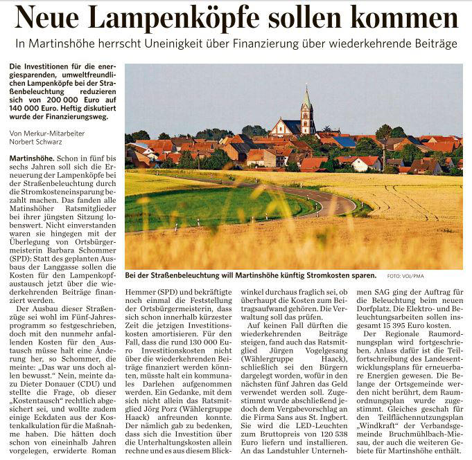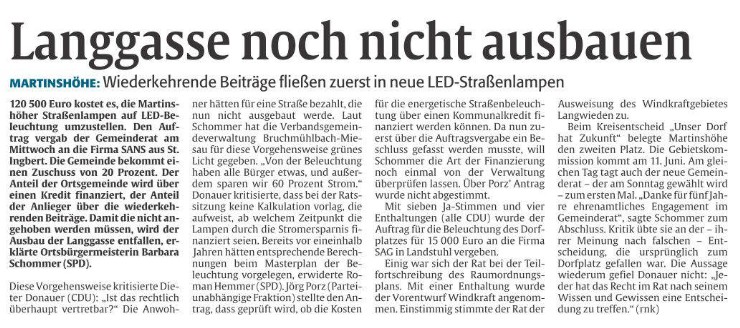 Am Dienstag, den 03.06.14 findet um 20 h in der Gaststätte Martinshöhe das nächste Treffen Arbeitsgruppe Ortsentwicklung statt.