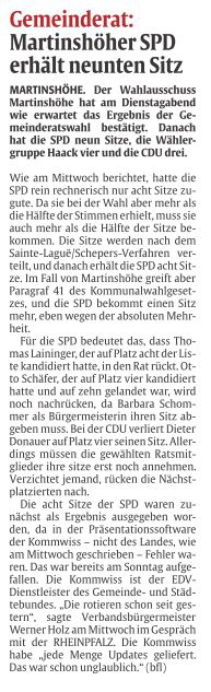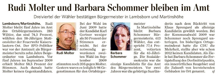 Ich danke allen Martinshöher Bürgerinnen und Bürgern für das Vertrauen und für die Wiederwahl zur Ortsbürgermeisterin.