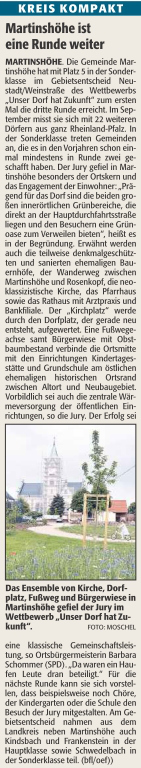 Wettbewerb „Unser Dorf hat Zukunft“ - Martinshöhe erreicht den 5. Platz in der Sonderklasse