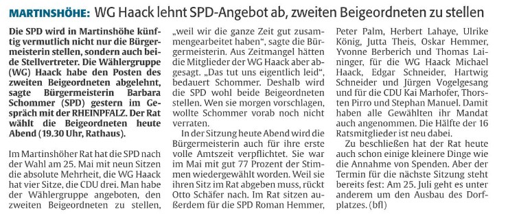 Anwesend waren ebenso Pirmin Heinz vom Pfälzer Waldverein und Peter Hemmer vom Schützenverein, welche die Sitzgarnitur aufgebaut haben und Frau Dahl vom Sportverein Martinshöhe, der neben anderen Vereinen die Fundamente ausgehoben und betoniert hat.