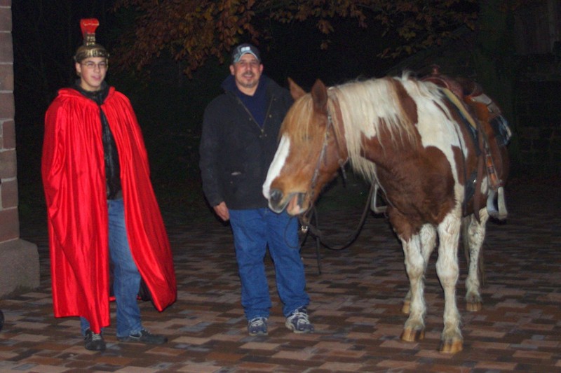 Im Anschluss an die schöne Martinsfeier wurden vor der Kirche die Martinsbrezeln ausgeteilt, außerdem wartete schon der Hl. Martin (Jens Hirsch) auf die Kinder.