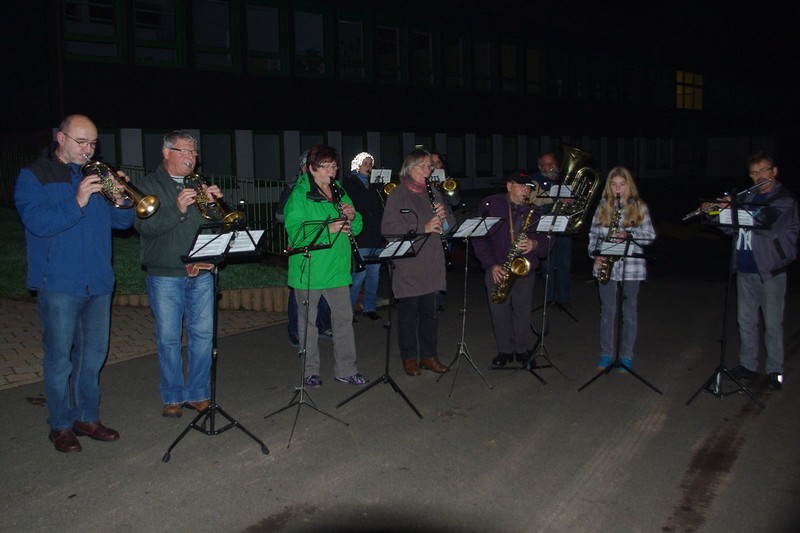 Der Musikverein Martinshöhe spielte beim Ankommen des Martinszuges Martinslieder, im Anschluss daran sang der Singkreis `Novus Cantus` gemeinsam mit den Kindern Martinslieder.