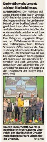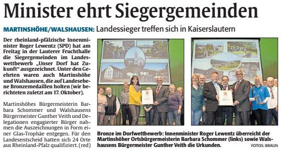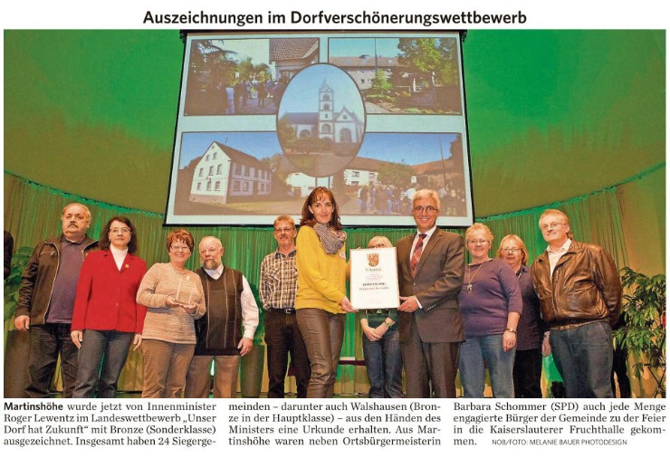 Martinshöhe hat- wie bereits berichtet- am Wettbewerb „Unser Dorf hat Zukunft“ auf Landesebene Bronze errreicht.