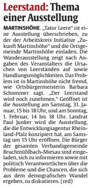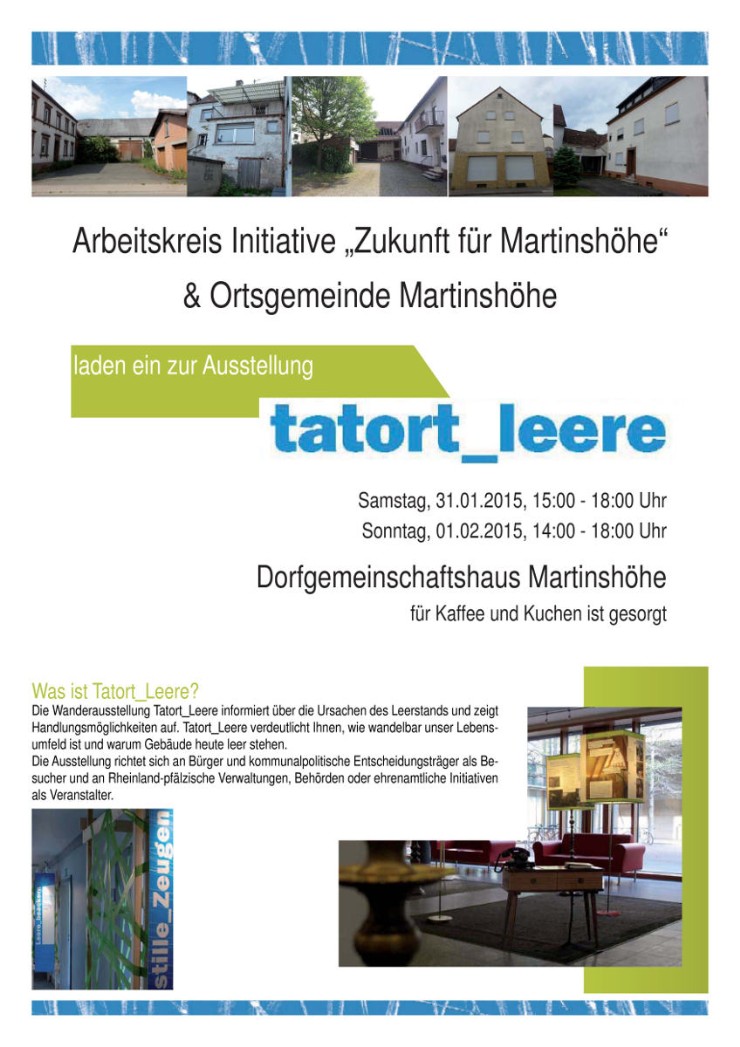 Einladung zur Ausstellung "Tatort Leere" im Dorfgemeinschaftshaus
