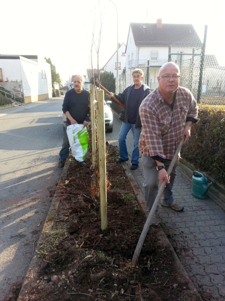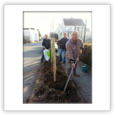 Am vergangenen Samstag wurden von Karl-Heinz Grotzki und Otto Schäfer die Pflanzinseln für die Pflanzarbeiten vorbereitet. Um die Pflanzlöcher für die Säulen- Eichen auszuheben,