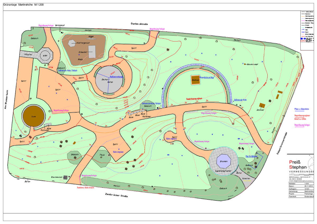 Dazu gehört z.B. das Erneuern und Ergänzen der Wegeeinfassungen, das Ergänzen des Wegebelages, Entfernen alter Hecken und Neuanpflanzungen, Renovierungen der vorhandenen Bänke und Ergänzen durch neue Bänke und Tische.