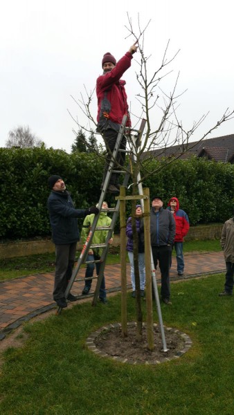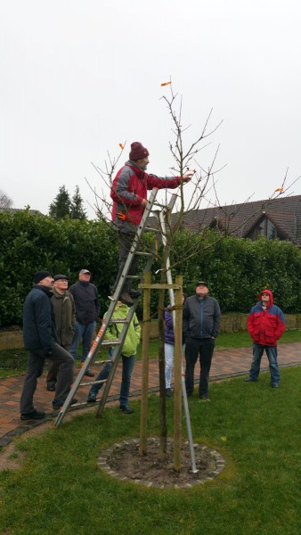 Am Samstag, den 13.02.16 fand der erste Baumschnittkurs am Dorfplatz unter reger Beteiligung der Bevölkerung statt. Herbert Ritthaler von der Baumschule Ritthaler erläuterte zunächst im theoretischen Teil die unterschiedlichen Baumformen und Schnittmöglichkeiten. Im praktischen Teil konnte jeder der Baumpaten bestimmen, wieviel der „Patenbaum“ geschnitten werden sollte. Die Teilnehmer des Baumschnittkurses konnten einiges lernen und konnten das Erlernte auch gleich umsetzen.