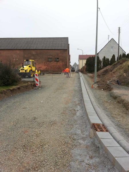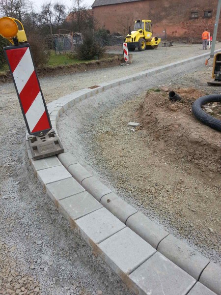 Die Bauarbeiten an der Bushaltestelle und am Gehweg im Bereich des Dorfplatzes gehen nach der Winterpause weiter.
