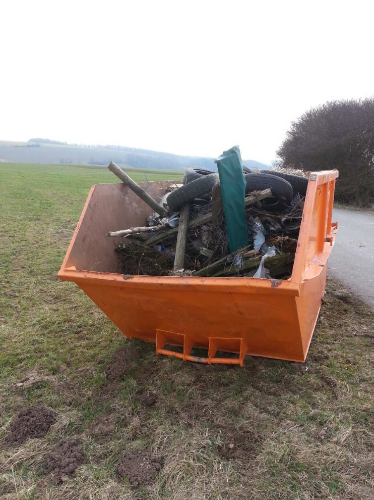 Um die Entsorgung des illegal auf unserer Gemarkung abgeladenen Mülls in Form von z.B. Bauschutt, Reifen, Glas, Restmüll, Plastik usw. haben sich unsere Landwirte gekümmert.